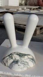 The half rabbit figure is an idea which came from a sculpture that was instantly classical and modern, fun and curious, soft but substantial.