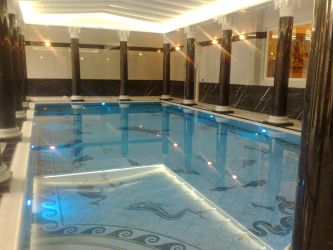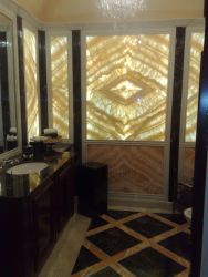 Supply and Installation of special work in marble and onyx, such as flooring with 3D waterjet effects, Stairs, Columns – capitals and frames with exclusive designs,“HAND MADE” mosaic with mythological subjects tubs and sinks made from blocks of granite and marble in Onyx and Backlit glass
